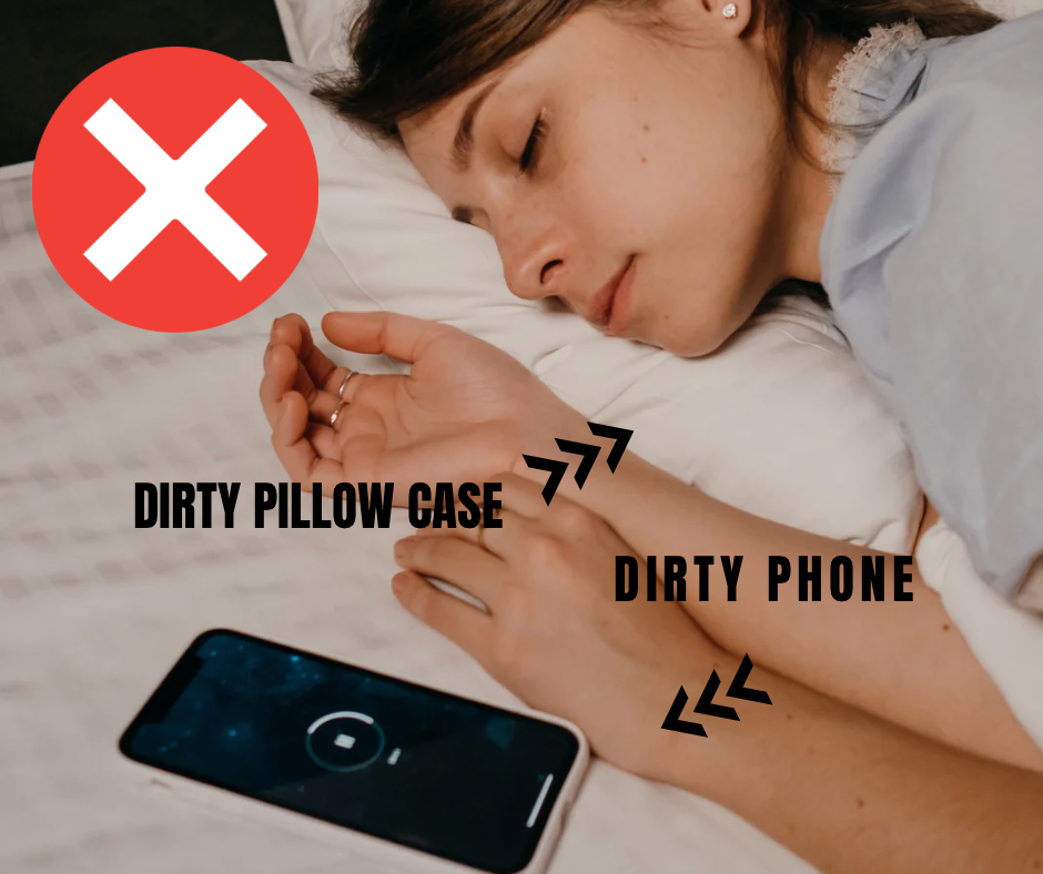 Simple fix: Wash your pillowcase 2x/week and disinfect your phone screen daily.