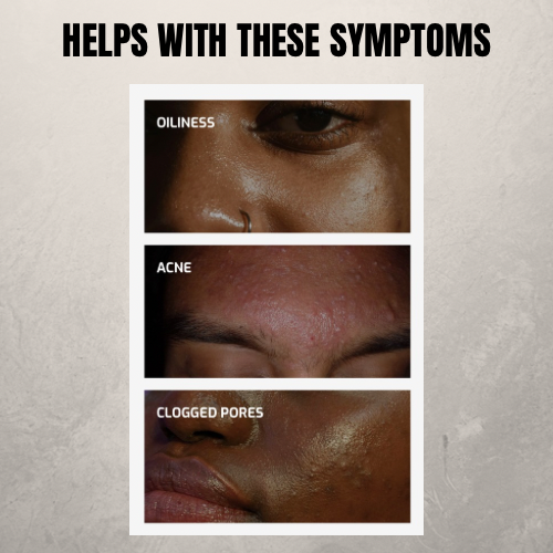 Acne and oily skin are typically caused by excess sebum production, clogged pores, and inflammation. This skin type is more prone to breakouts, blackheads, and enlarged pores. Balancing oil levels, gently exfoliating, and reducing bacteria are essential for clear, healthy skin.